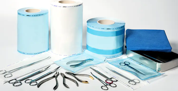 Koncové sterilizačné obaly pre vysokorizikové zdravotnícke pomôcky, ako sú súpravy chirurgických nástrojov, implantáty a katétre.